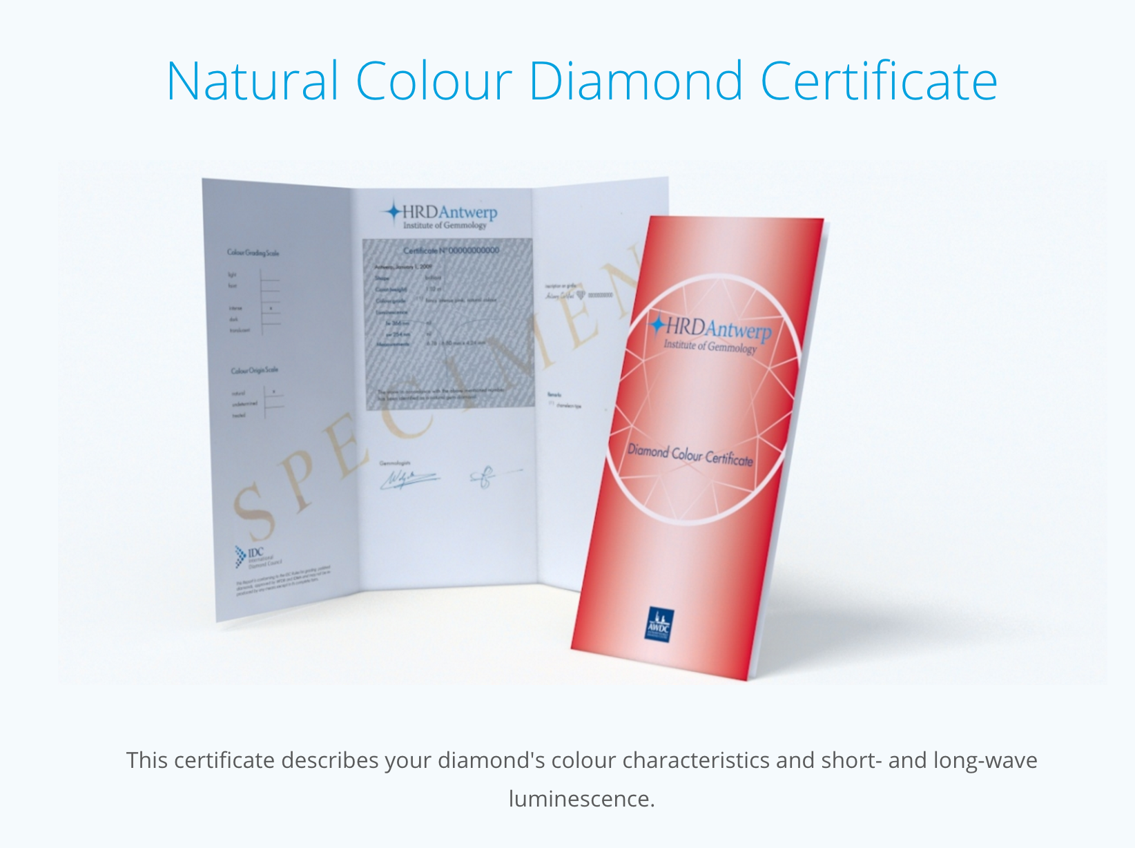 Giấy Chứng Nhận Kim Cương Màu Thiên Nhiên Của HRD - Hội Đồng Kim Cương Tối Cao Bỉ có màu Đỏ